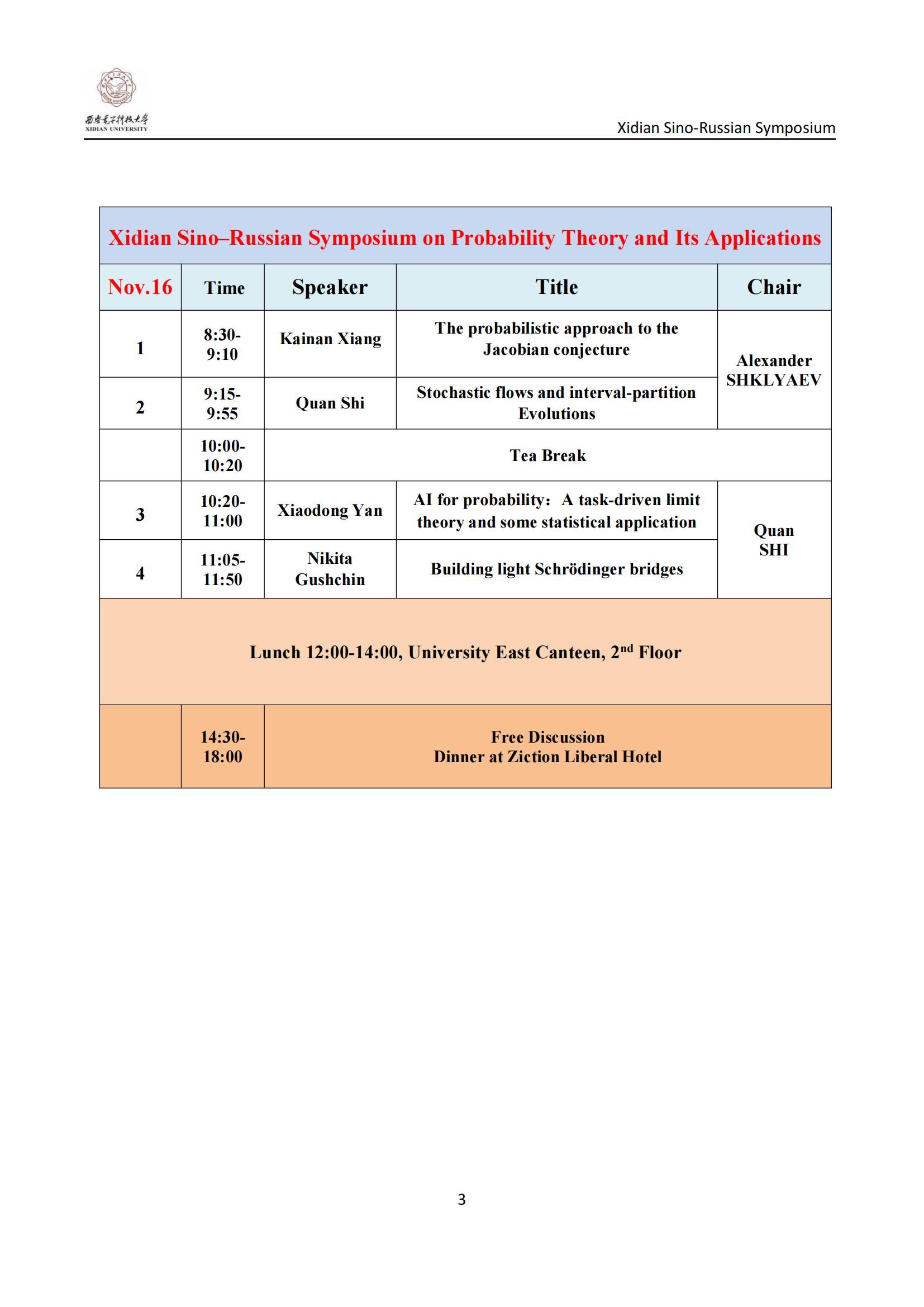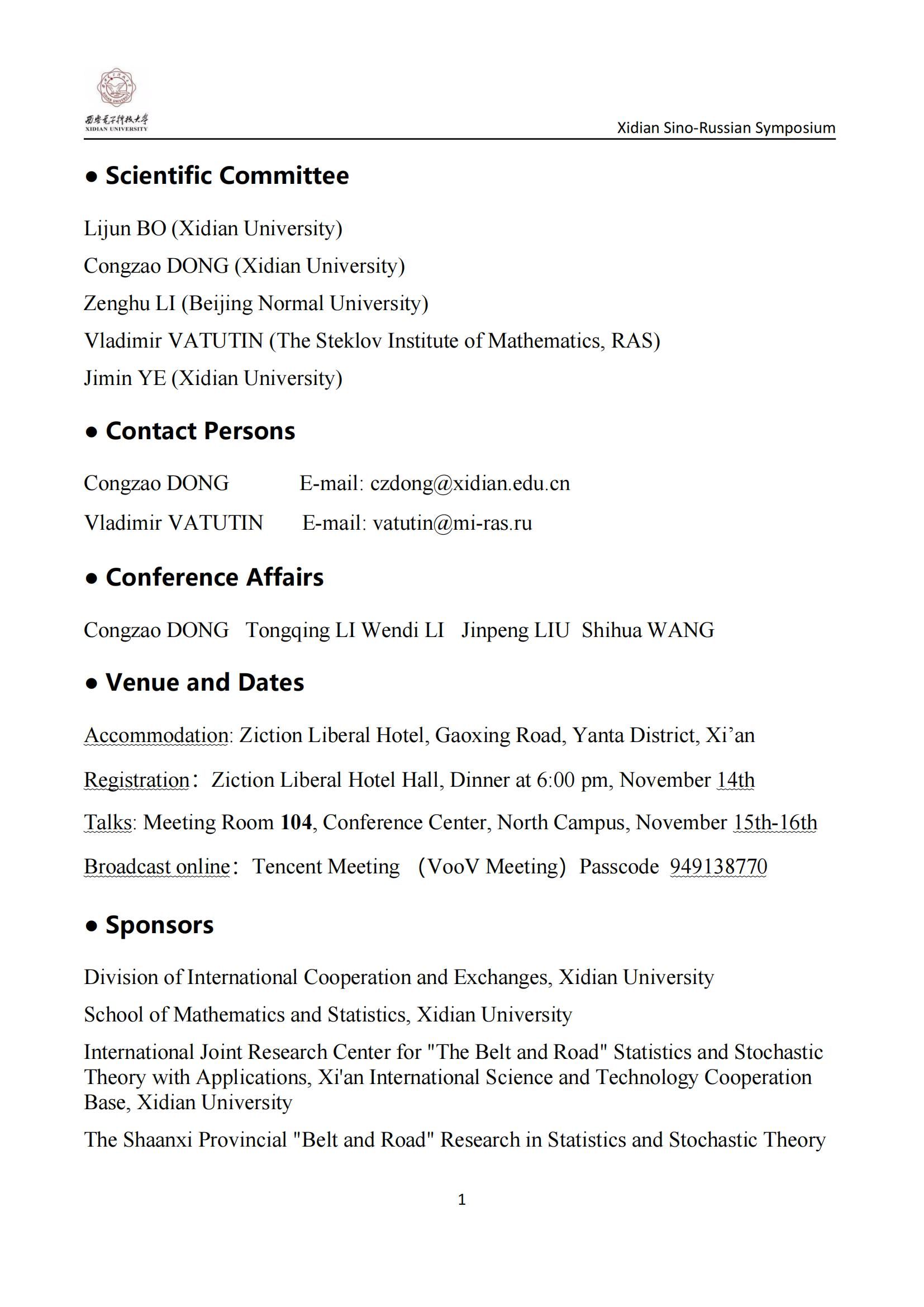 西电中-俄概率论及其应用研讨会