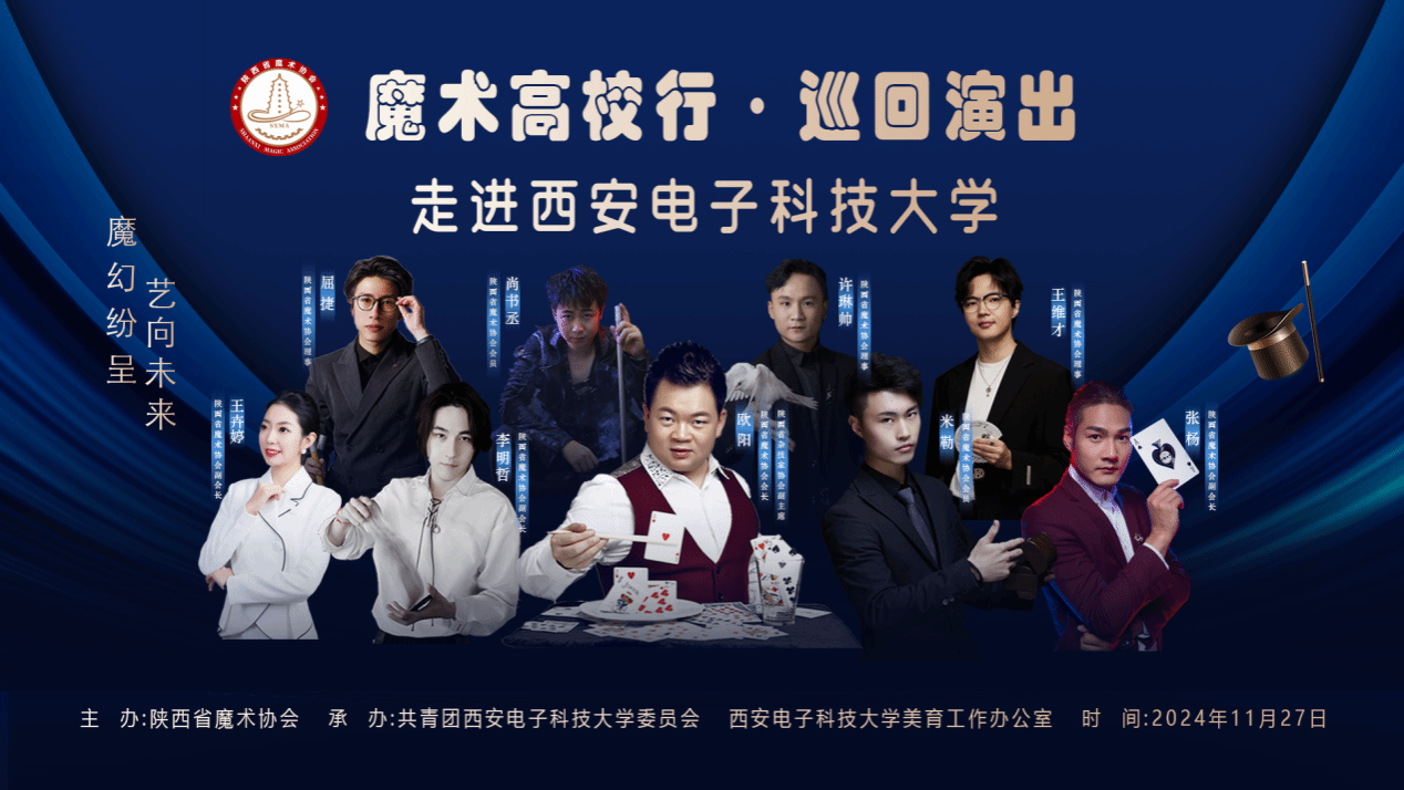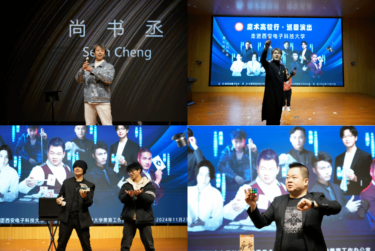 本次活动由陕西省魔术协会主办,校团委、美育工作办公室及新生社区/书院联合承办。陕西省魔术协会的魔术师们带来的八出魔术节目精妙绝伦,引得台下观众叫好连连,掌声不断。