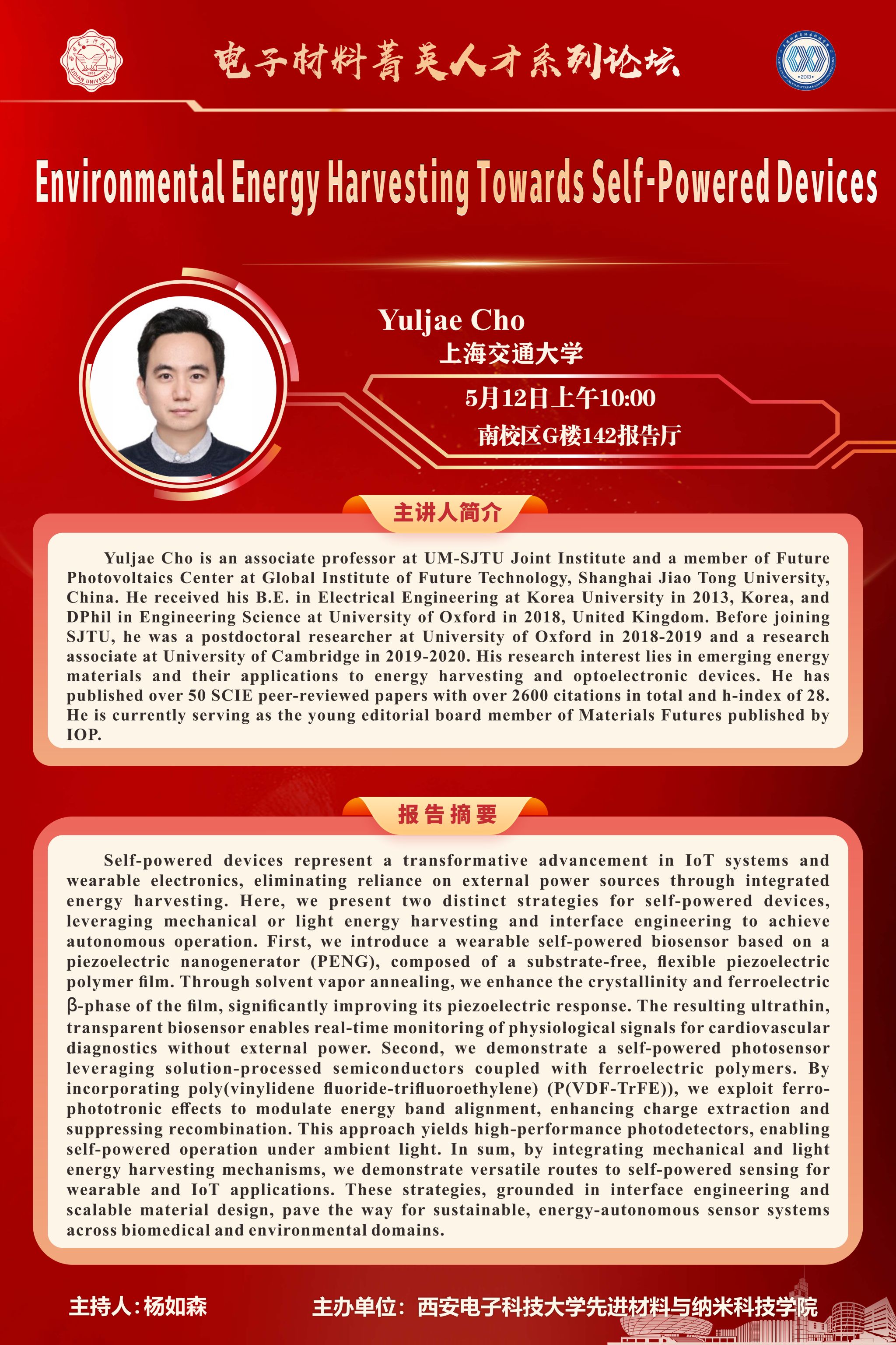 报告人:Yuljae Cho 教授