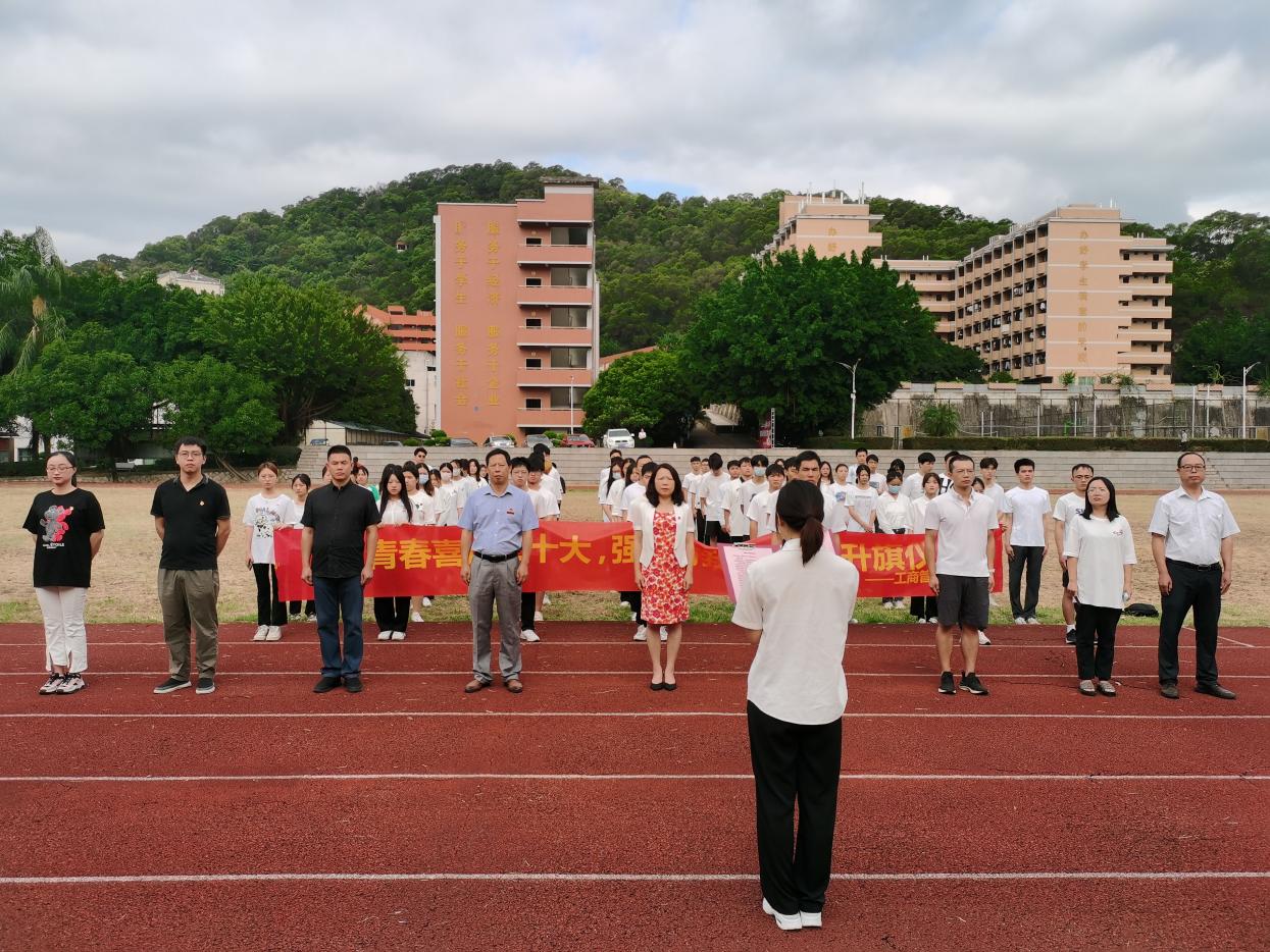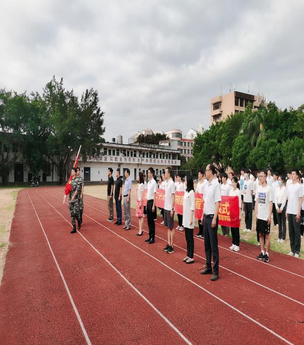 迎着初升的太阳,沐浴金秋的微风,上午八时许,在beat365英国官方网站党委副书记吴思锋的主持下,升旗仪式拉开帷幕。在庄严肃穆的氛围中,升旗手迈着雄健的正步将旗帜送上旗杆,嘹亮的国歌透过音响在操场响起,师生们跟唱着国歌,注视着红旗冉冉升起。
