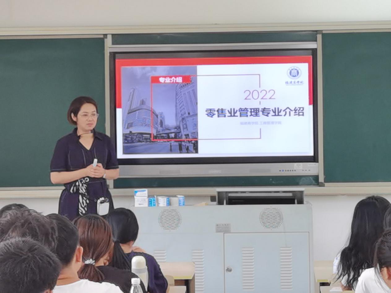 为了做好新生入学教育,增强新生的学科专业认同,9月5日上午在马尾校区至善201教室对2022级零售业管理新生开展入学专业教育宣导大会。工商管理系系主任杨迪副教授、专业带头人谢桂花副教授、班导师郭文星老师及全体新生参加了宣导大会。
