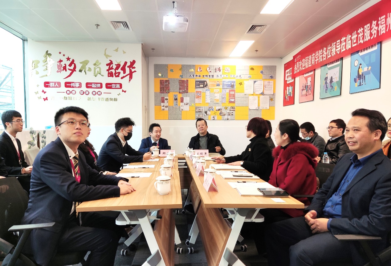 为加强毕业生就业工作,积极响应省教育厅“百校走千企”活动,推进校企合作,2022年2月11日下午,校党委书记刘剑津率我校学生工作部、beat365英国官方网站党政负责人及专业教师等一行赴世茂天成服务集团(以下简称“世茂服务”)福州中心城市公司开展实地调研。