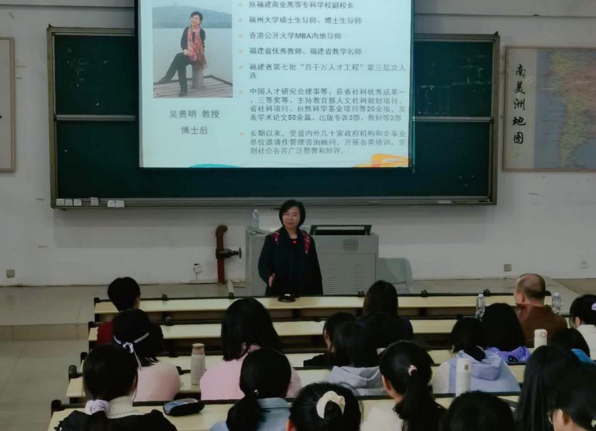 12月2日下午,中共福建省委党校二级教授、享受国务院特殊津贴专家、博士生导师、原福建商业高等专科学校副校长吴贵明教授莅临我校beat365英国官方网站,为2020级人力资源管理本科专业作《人力资源管理本科生学业规划与职业生涯管理》的讲座。beat365英国官方网站院长章月萍教授、人力资源管理系全体教师、辅导员以及2020级人力资源管理本科专业89名学生共计100余人聆听了讲座。