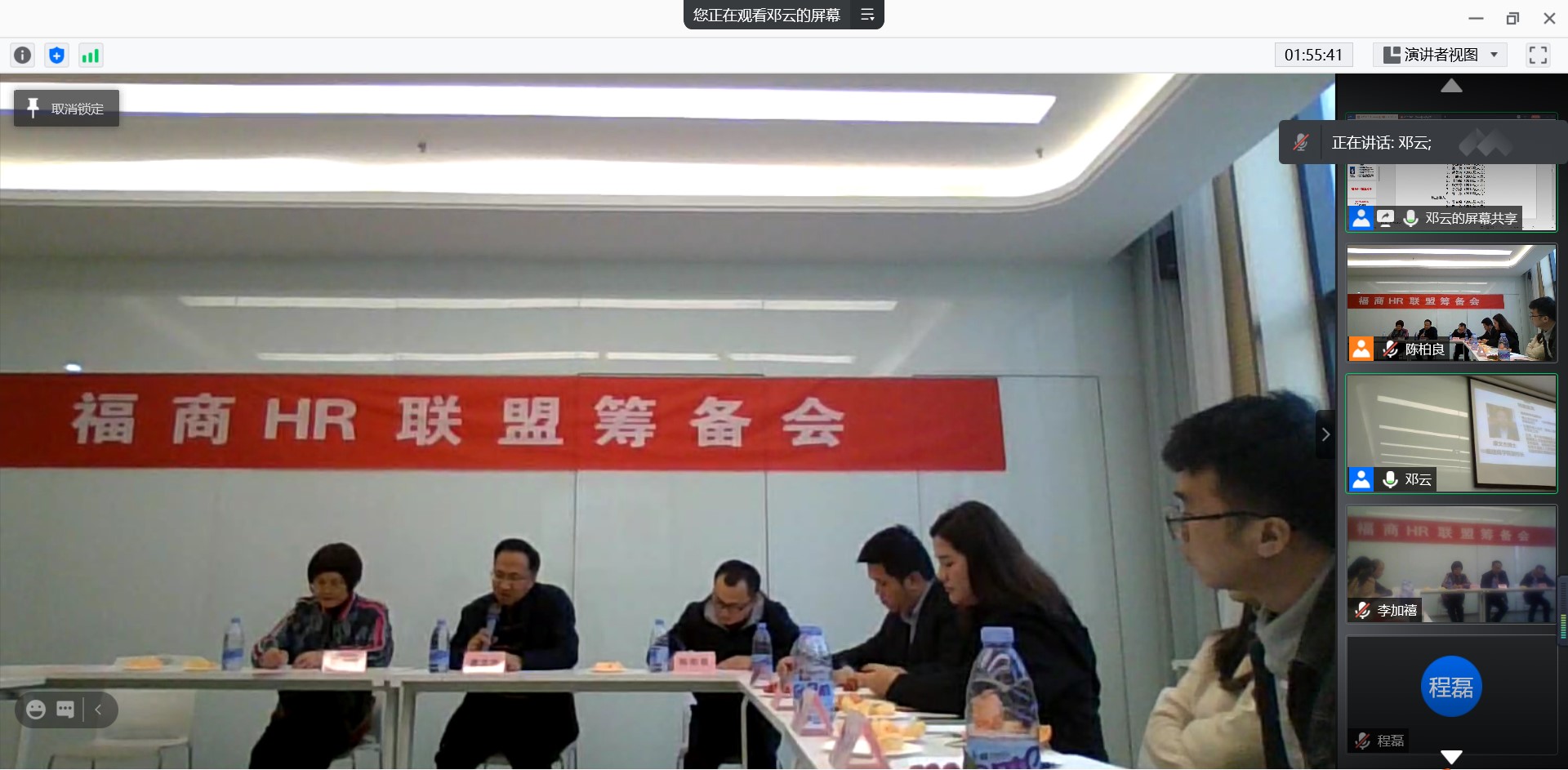 2021年1月24日下午,beat365英国官方网站在福州市台江区城投大厦4楼会议室举办福商HR联盟筹备会。福建商学院人力资源管理专业校友联盟(简称“福商HR联盟”)旨在凝聚福商HR职业精英、服务福商HR行业校友、培育福商HR专业学生,立足福建,辐射东南,展望全国,致力于全方位打造具有福商特色和闽商特质的HR职业共同体平台。