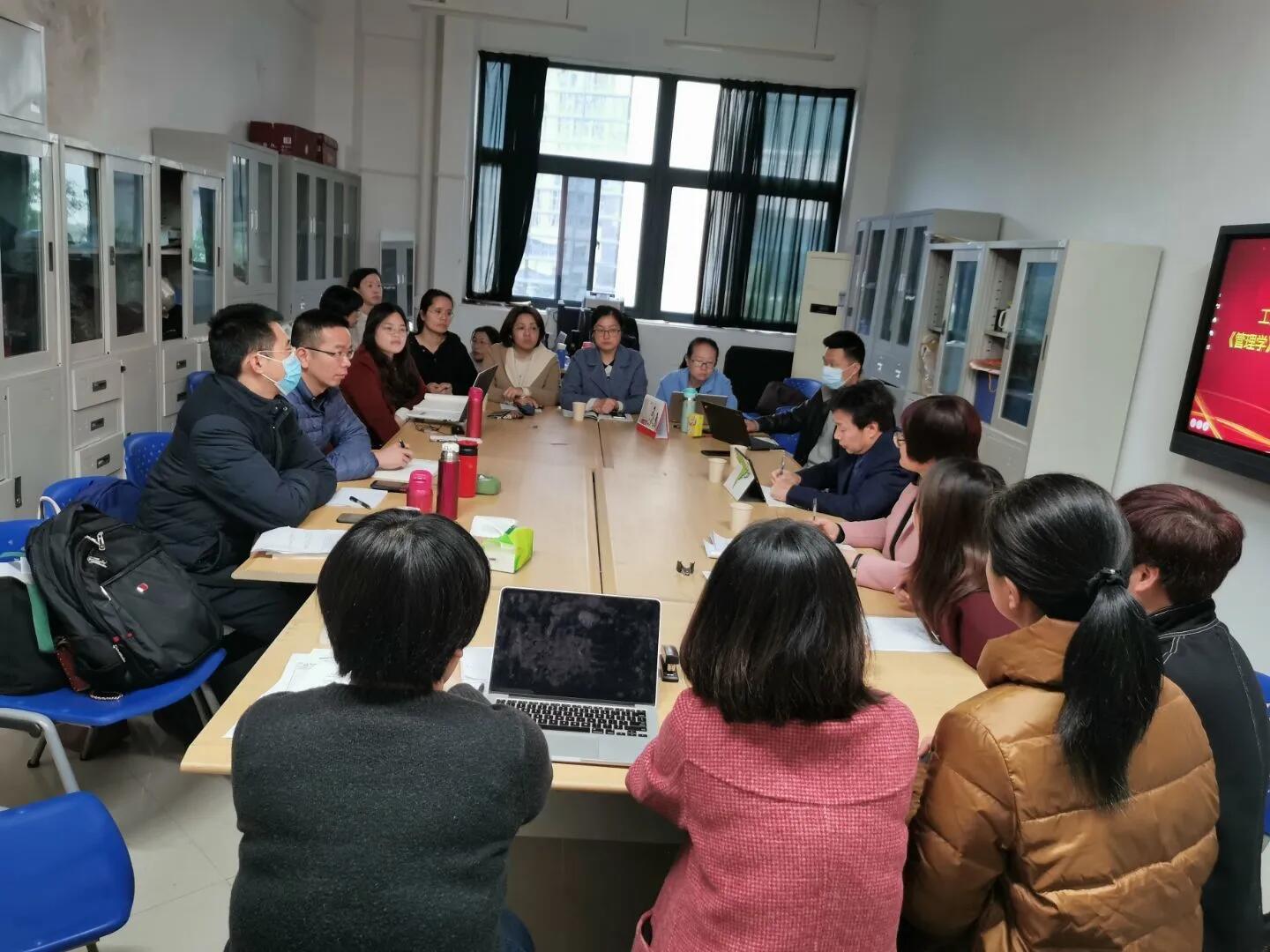 根据我校推进课程思政建设工作的部署,2021年3月23日,beat365英国官方网站召开课程思政建设推进会,并邀请beat365“课程思政”对口教师陈火荣、蔡珍美两位老师在马尾校区工商管理系办公室以“如何更好地推动学院开展课程思政教育”为主题召开课程思政研讨会。与会人员有beat365英国官方网站院长章月萍、工商管理系主任杨迪、副主任李冰,市场营销系主任郑艳芳,工商管理系全体教师及市场营销系、人力资源教学部部分教师等,本次研讨会由工商管理系副主任李冰主持。