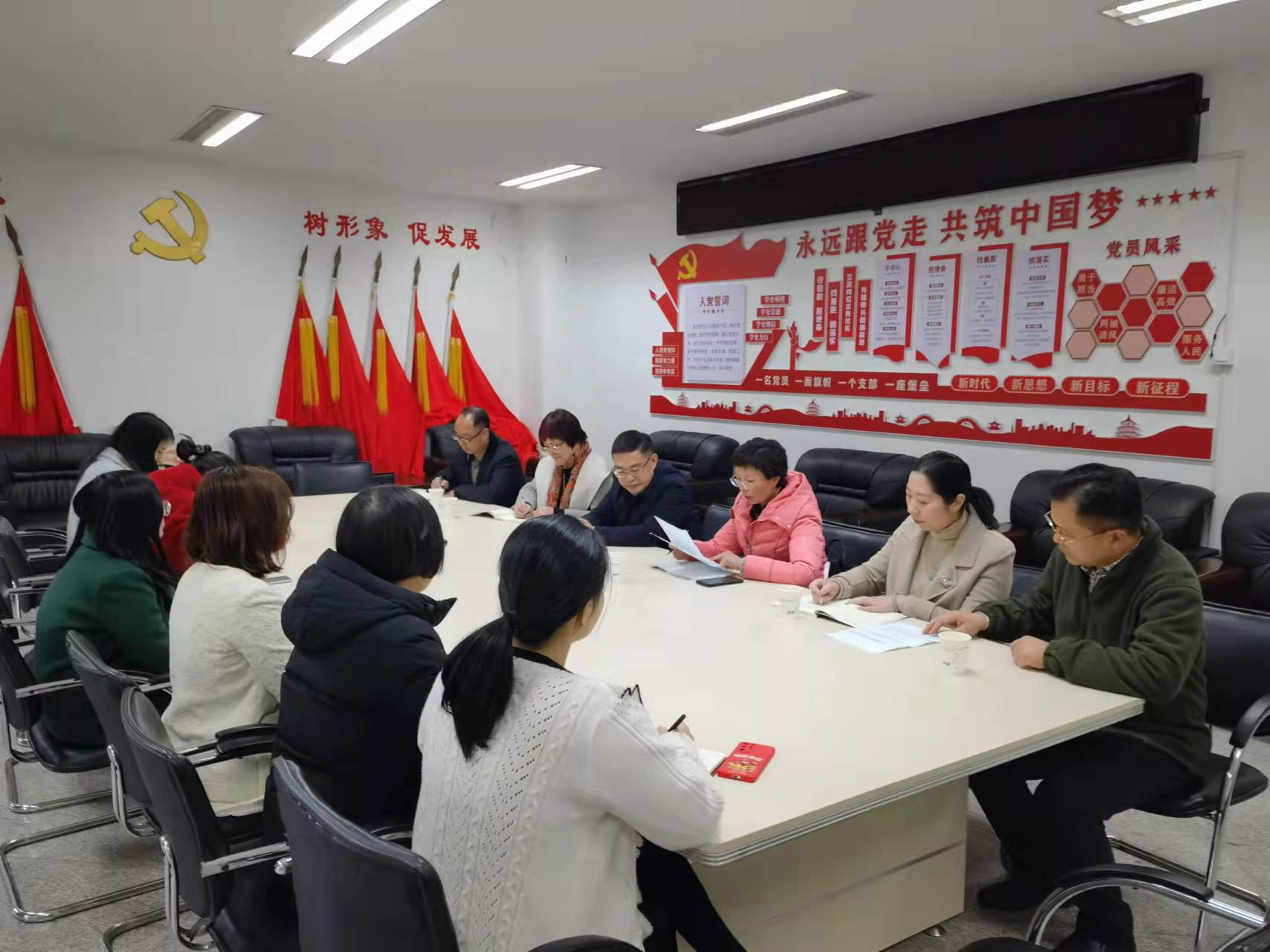 他强调,要发挥党组织战斗堡垒作用,引领学院各项事业发展,做到“九个聚焦”:一是聚焦师资培养,强化培训和交流提升队伍建设;二是聚焦教学实效,着力竞赛和项目推进事业改革创新;三是聚焦学科建设,锚定规划把准本学科发展定位;四是聚焦科学研究,启动“人人做科研,人人有项目”的要求;五是聚焦课堂管理,加强听课评课严格督导考核;六是聚焦教学评价,加强师德师风教风学风建设;七是聚焦理论学习,办好办强读书社扩大学习覆盖面;八是聚焦社会服务,打造宣传品牌扩大社会影响力;九是聚焦学院建设,加强校企合作促发展。