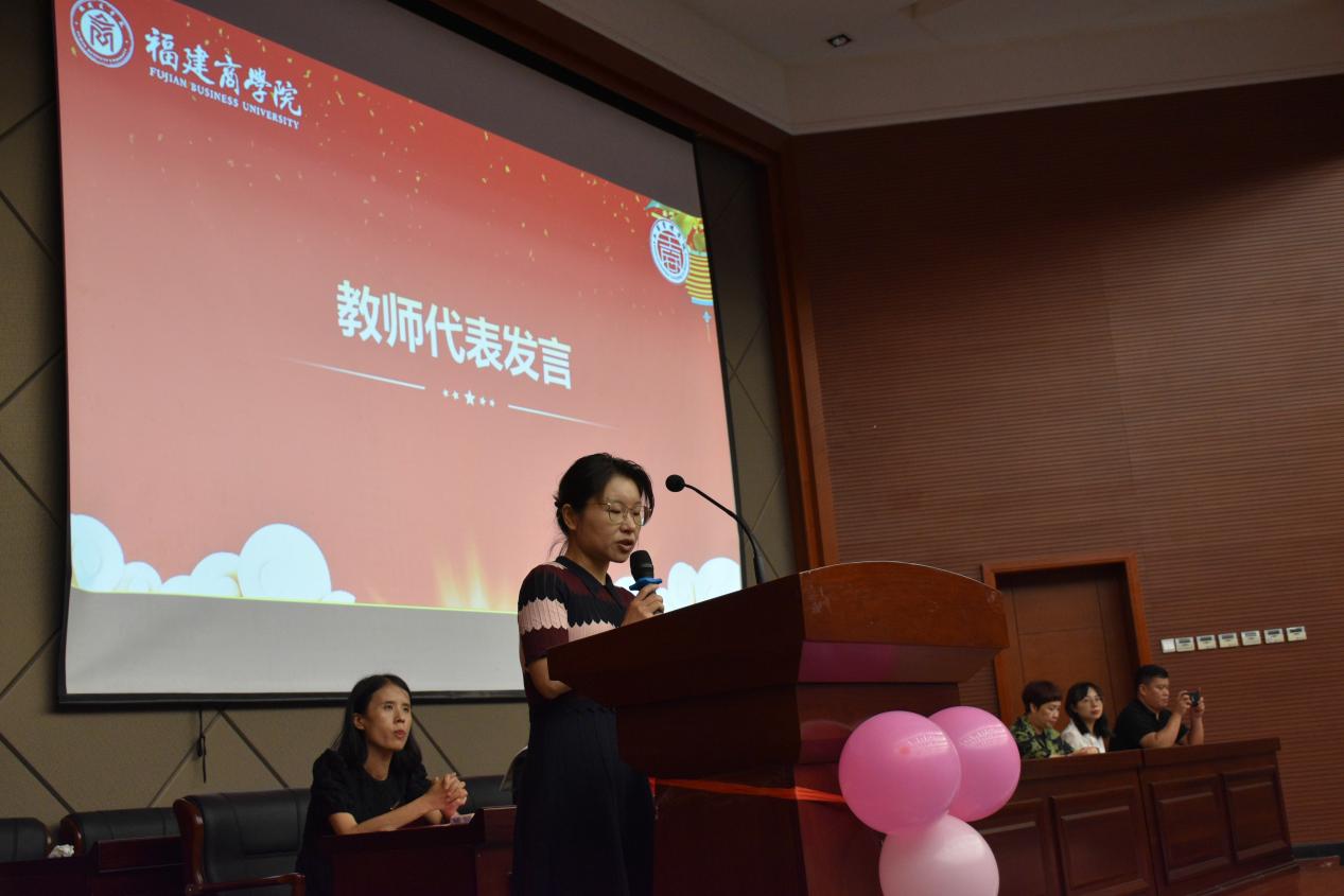 教师代表李冰老师深情回顾了和同学们在一起的点点滴滴,并叮嘱同学们要保持努力奋斗的精神,不断完善自己。