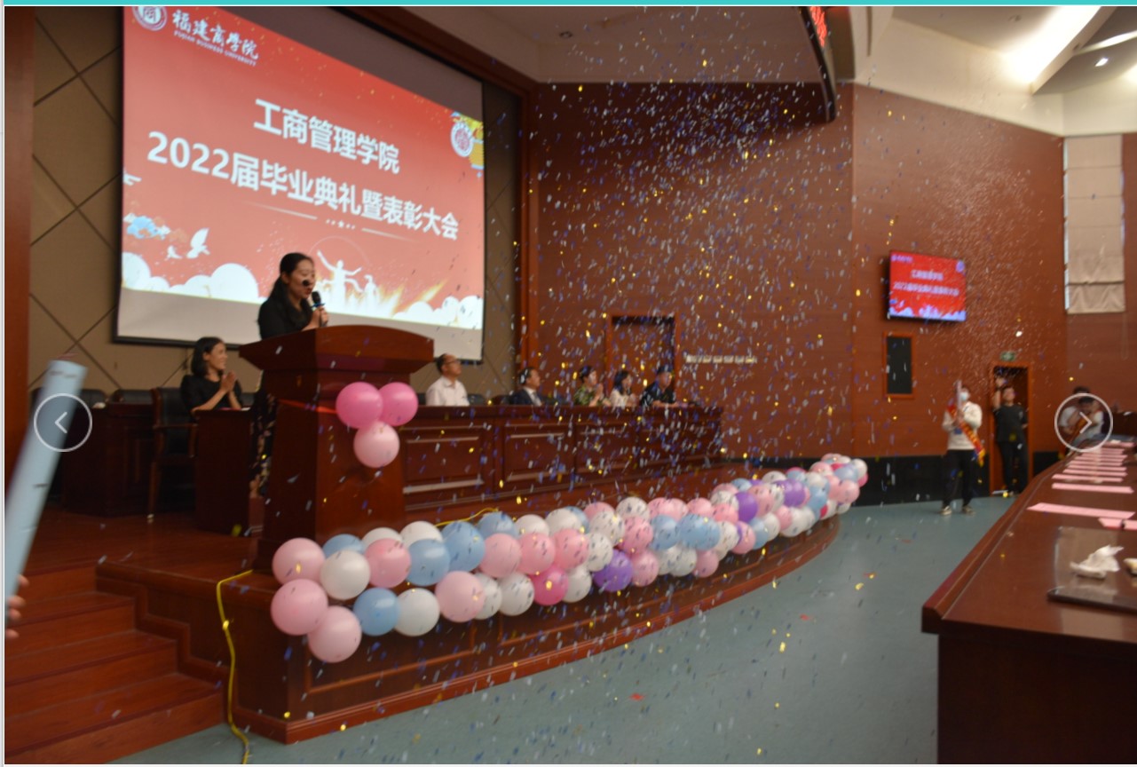 6月13日下午,beat365英国官方网站2022届毕业典礼在马尾校区学术报告厅隆重举行。本次毕业典礼由办公室主任林娈主持,beat365党委副书记陈达颖、吴思锋、副院长纪孝清、严谨、团委书记韩玉娟以及教师代表、辅导员代表、毕业生代表等近200人参加了本次活动。