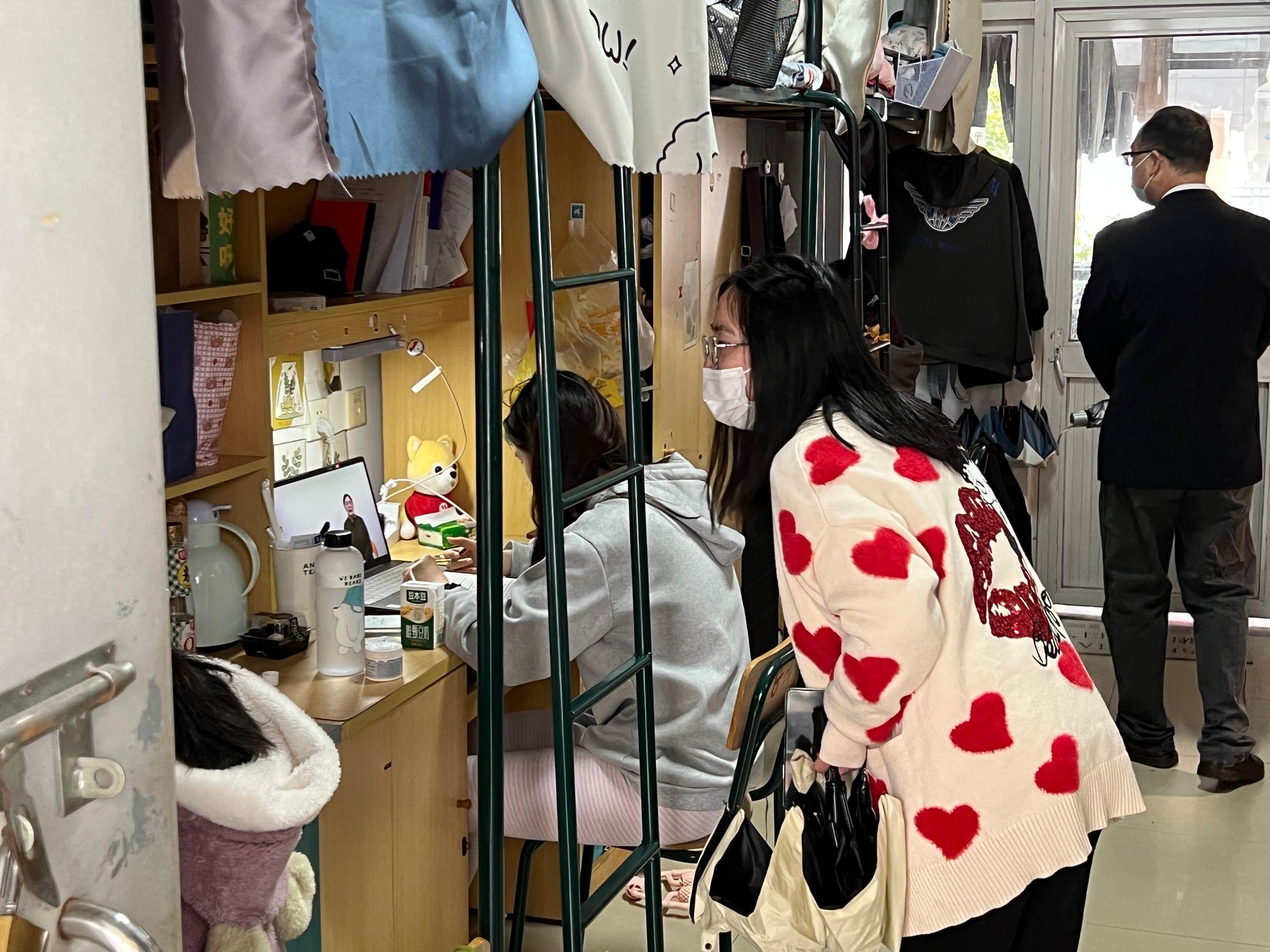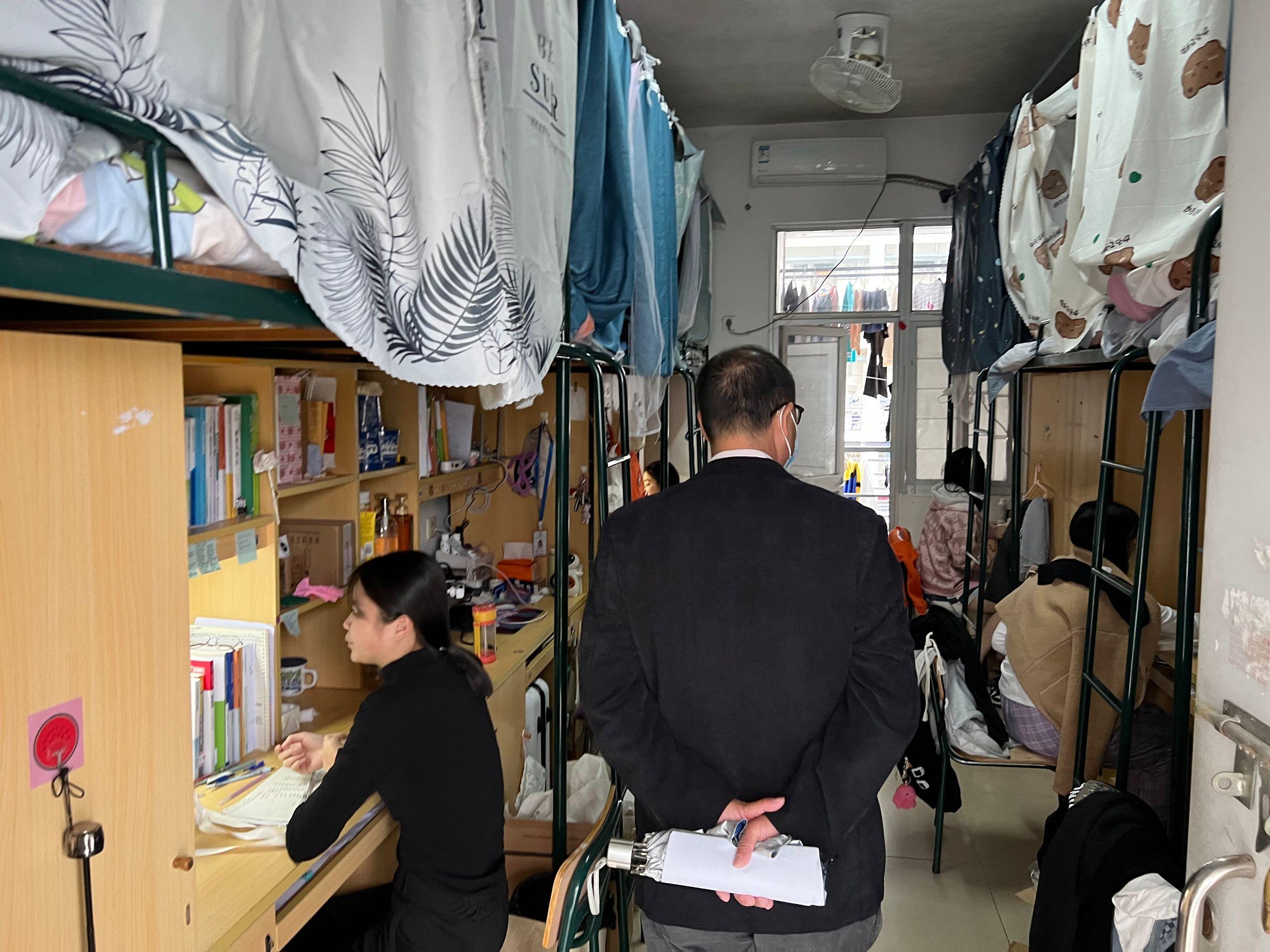 走访过程中,老师们与宿舍的同学们亲切交谈,提醒同学们要提前调整好学习状态,不因线上课程而懈怠。同时,叮嘱同学们要做好寝室卫生,注意饮食安全,加强自我保护。