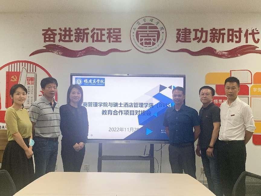 为进一步加强国际交流,培养更多具有国际视野的人才,推进beat365英国官方网站国际化发展,福建商学院对外合作处、beat365英国官方网站与瑞士高等商学院(BVIS)校方代表于11月29日下午在beat365英国官方网站会议室举行了教育合作项目对接会。我校对外合作处何文贤处长、beat365英国官方网站纪孝清副院长、林龙博士、瑞士高等商学院(BVIS)校方代表蒋婷主任及福州联络人魏露珍女士、育达行政主任黄晓参加了会议。