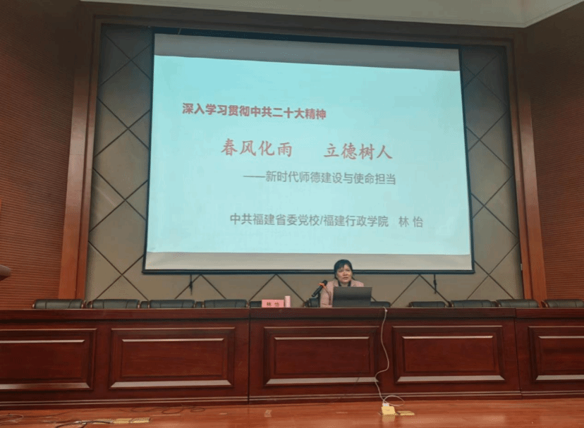 3月14日,福建省委党校林怡教授应邀到beat365作“春风化雨、立德树人——新时代师德建设与使命担当”的专题讲座。beat365英国官方网站全体教师、部分学生等150多人参加学习。