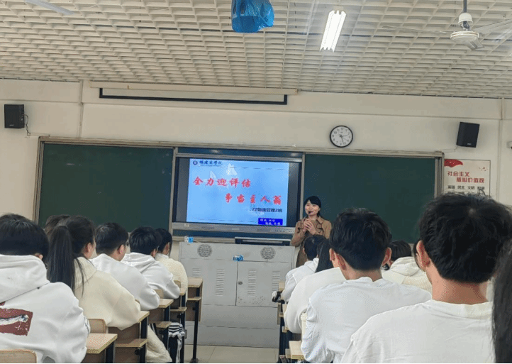 为了进一步推进落实本科教学工作合格评估迎评工作,增强同学们迎评意识,3月28日下午,2022级物流管理2班学生在马尾校区远志楼302教室开展了“全力迎评估,争当主人翁”主题班会活动。参与此次主题班会的领导老师有学生工作部长林文聪、学院党委副书记(主持工作)陈达颖以及学院辅导员、班主任代表参加了观摩。