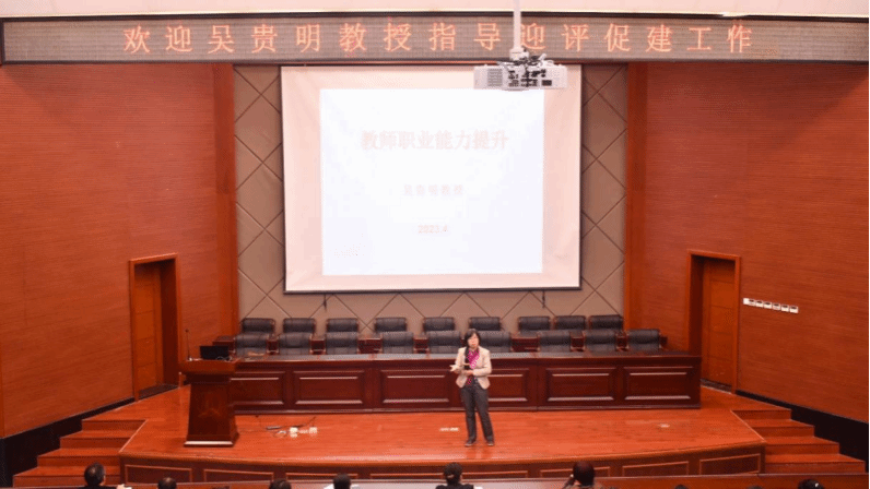 4月11日下午,吴贵明教授应邀到beat365作题为“迎评促建,教师职业能力提升”专题讲座。beat365英国官方网站和金融学院全体教师共110多人参加学习此次讲座。