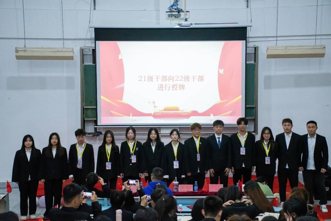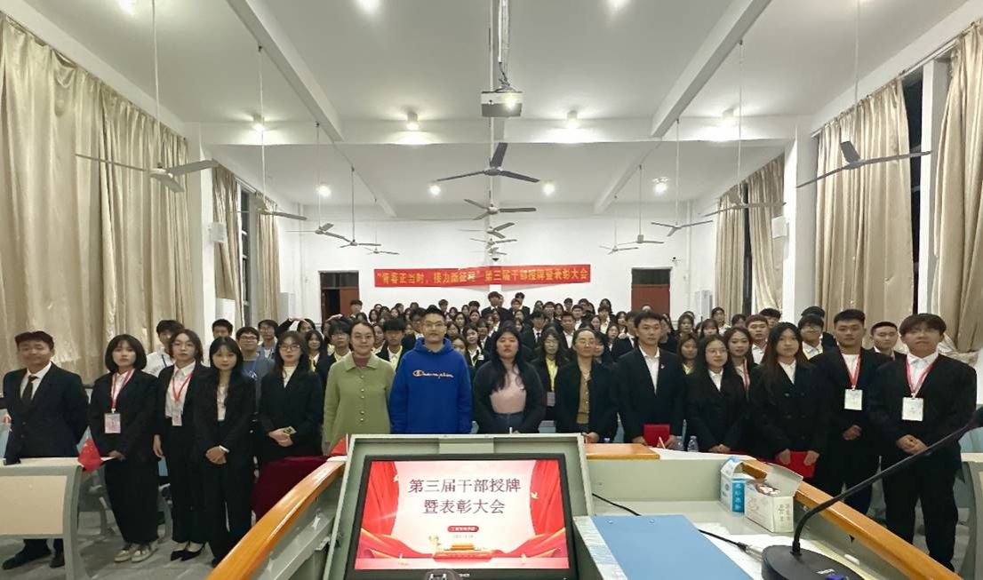为进一步加强beat365学生干部队伍建设,强化团委学生会成员的责任意识和担当精神,切实保障团委学生会工作的连续性。2023年11月20日,beat365英国官方网站于非洲厅召开“青春正当时,接力新征程”第三届干部授牌暨表彰大会,beat365英国官方网站团委书记韩玉娟、辅导员朱珺玮、谢婧妍、江美玲、林骁勇出席,第二届全体学生干部和第三届全体学生干部参加本次大会。