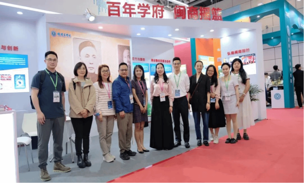 本届高博会主题活动主要由“展览展示”和“高质量学术交流活动”两大板块构成,设置两岸融合专区,举办“海峡两岸高等教育融合发展”学术活动、“台青之友”沙龙活动等,围绕教育、人才、文化等因素,强化资源统筹、项目整合,积极展示两岸融合发展成果。福建商学院应邀作为参展单位之一,在高等教育改革发展成果展区独立设置特色展位,并与新大陆时代科技携手共建数字商务产业学院,旨在推动教育与产业的深度融合。