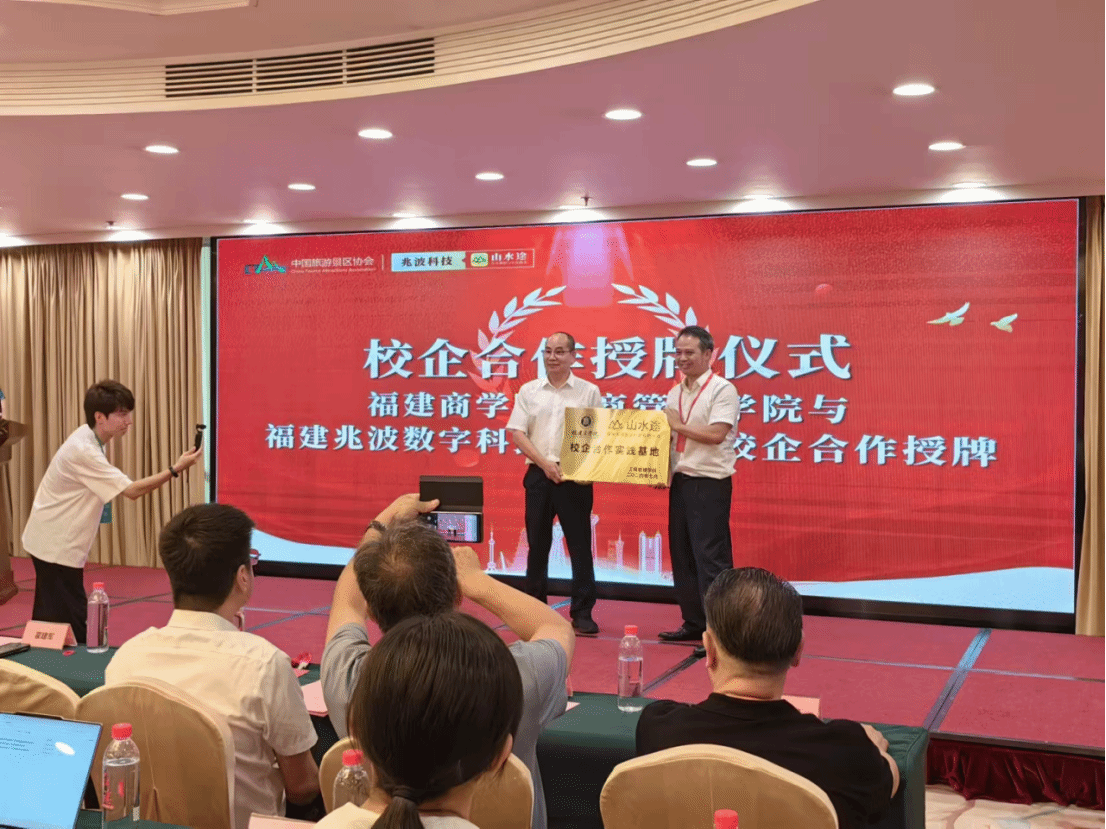 在中国旅游景区协会数据要素专业委员会(以下简称“中景协数据要素专委会”)成立大会期间,beat365英国官方网站与福建兆波数字科技有限公司在福建会堂举行了校企合作授牌仪式。此次合作旨在深化产教融合,共同推动数字化项目在旅游行业的落地与实施。