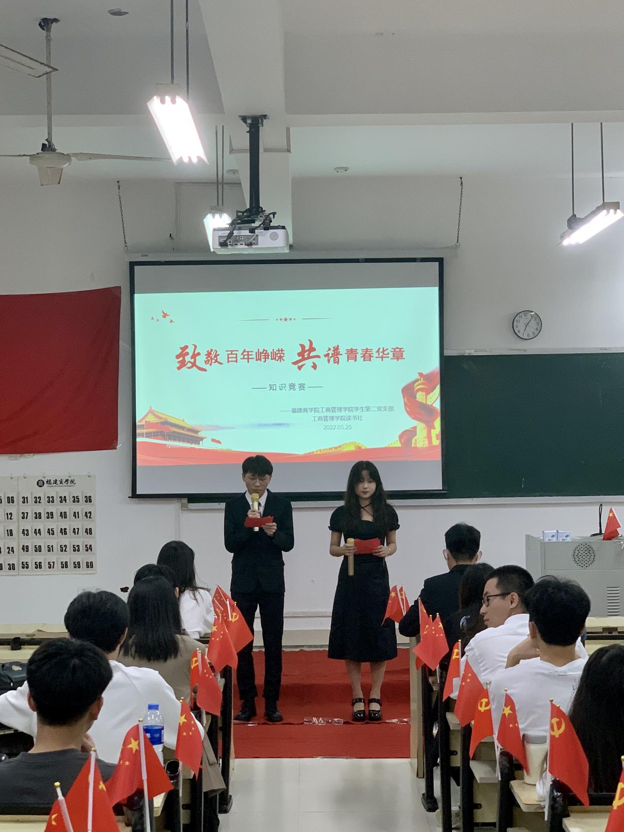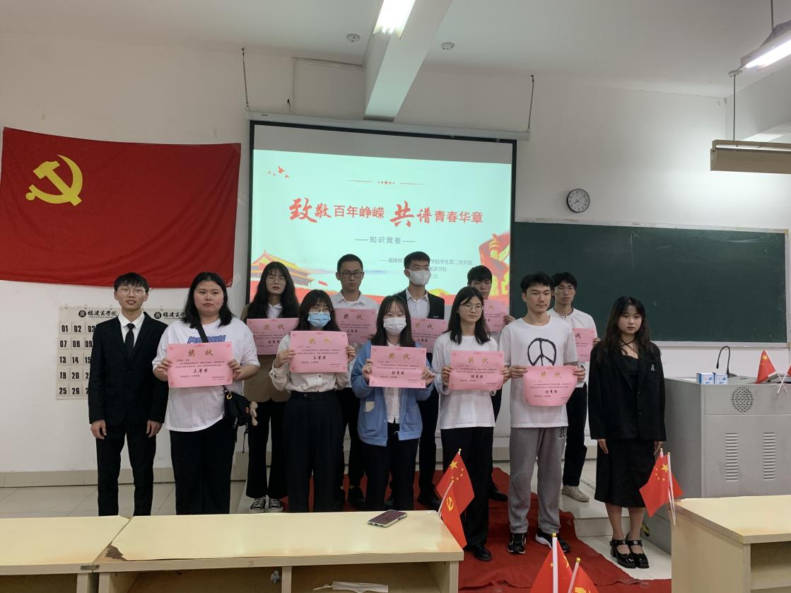 为了迎接党的二十大胜利召开,为了更好地铭记党的百年历史、传承党的光荣传统、发扬党的优良作风,5月25日晚上,beat365英国官方网站读书社联合beat365英国官方网站学生第二党支部在远志楼T1开展以“致敬百年峥嵘,共谱青春华章”为主题的党的知识竞赛。