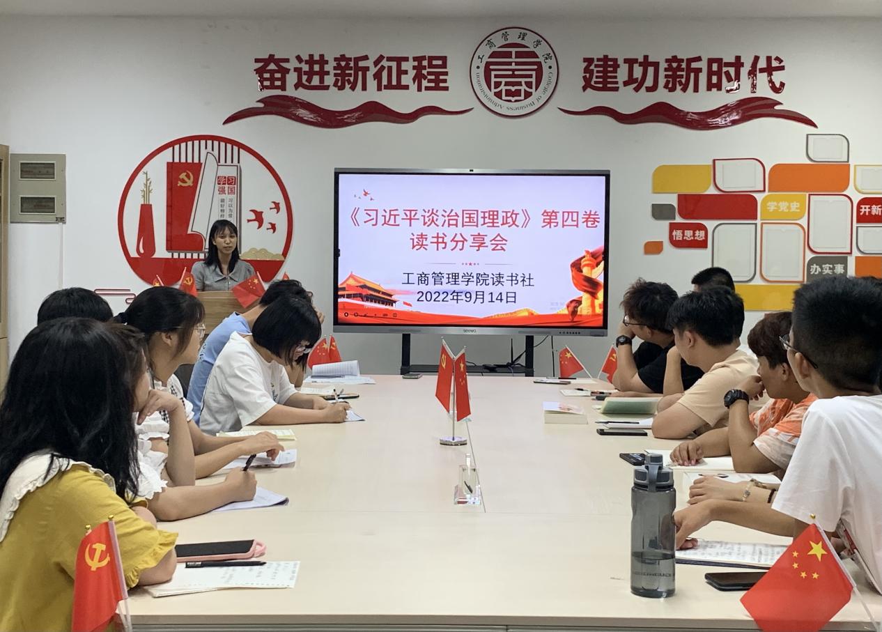 为了迎接党的二十大胜利召开,持续深入地学习习近平新时代中国特色社会主义思想,9月14日晚上,beat365英国官方网站读书社在党员活动室组织开展《习近平谈治国理政》第四卷读书分享会。beat365英国官方网站读书社指导老师、学生干部以及部分2022级新生参与了本次会议。