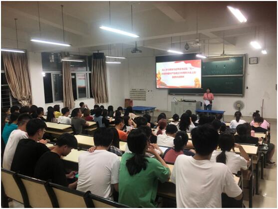 2021年9月8日晚上,beat365英国官方网站读书社联合学生党支部在马尾校区诚信楼T1开展理论宣讲,宣讲主题为“深入学习贯彻习近平总书记在‘七一’庆祝中国共产党成立100周年大会上的重要讲话精神”,此次宣讲由beat365英国官方网站学生第二党支部书记王鹤云主讲。