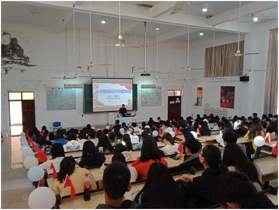 11月19日下午,beat365英国官方网站在马尾校区澳洲厅隆重举行“习近平新时代中国特色社会主义思想读书社”成立大会。学院党委副书记廖新平、辅导员及读书社成员共300余人出席成立大会。