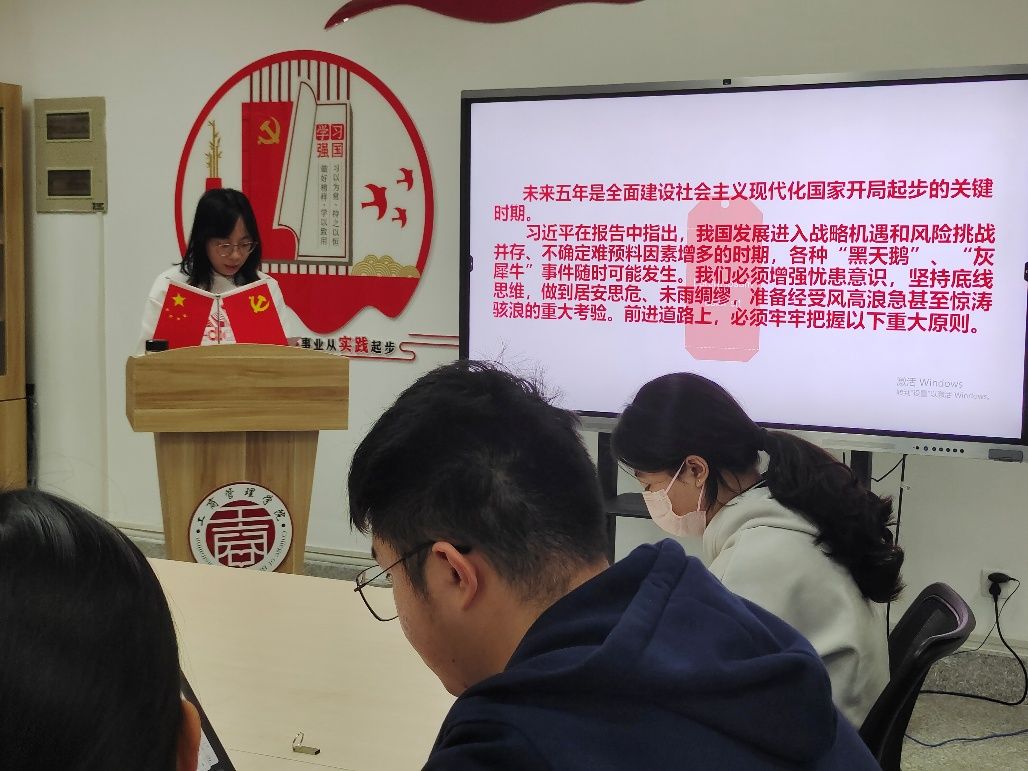 支部副书记许艳萍老师紧扣党的二十大报告原文,从深刻领会党的二十大的主题、主要成果,深刻领会过去五年工作和新时代十年的伟大变革,深刻领会开辟马克思主义中国化时代化新境界,深刻领会中国式现代化的中国特色和本质要求,深刻领会社会主义经济建设、政治建设、文化建设、社会建设、生态文明建设等方面的重大部署,深刻领会坚持党的全面领导和全面从严治党的重大部署,深刻领会以顽强斗争应对风险挑战的要求,深刻领会教育、科技、人才的重大部署,迅速掀起学习宣传贯彻党的二十大精神热潮等九个方面,对党的二十大精神进行系统宣讲和深入阐释。 近日,beat365英国官方网站学生第一党支部副书记许艳萍以“深入学习贯彻党的二十大精神,发挥党员的先锋模范作用”为题作宣讲报告。支部党员及入党积极分子聆听报告。