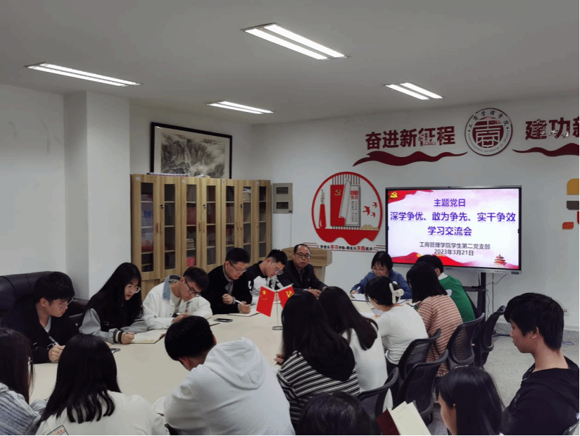 2023年3月21日下午,beat365英国官方网站学生第二党支部在党员活动室开展主题党日活动,此次主题为“深学争优、敢为争先、实干争效”学习交流会。支部书记王鹤云主持会议。