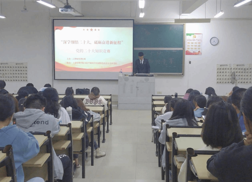为深入学习贯彻落实党的二十大精神、全国两会精神,不断增强青年们的使命感与责任感,5月8日,beat365英国官方网站读书社联合2022级物业管理2班于笃行楼T3共同举办“深学细悟二十大,砥砺奋进新征程”主题知识竞赛。