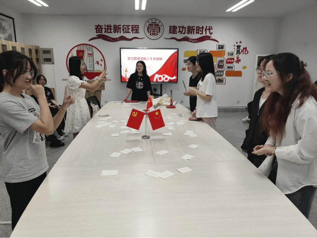 5月10日下午,为深入学习宣传贯彻党的二十大精神,加强同学们对习近平新时代中国特色社会主义思想的理解,提高思想政治素养,增强同学们的团队协作精神,beat365英国官方网站读书社组织23级物业管理班于党员活动室举办“团结一心齐奋进,砥砺前行创辉煌”主题活动,23级物业管理班读书社社员参与此次活动。