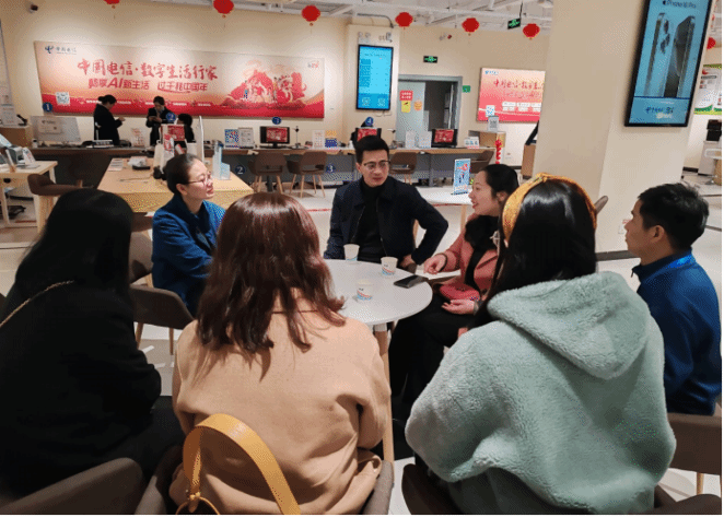 为全面落实党中央、国务院及省委省政府对高校毕业生就业创业工作的决策部署,精准对接人才需求,拓展就业渠道,解决求职过程中的“急难愁盼”问题,2025年2月7日上午,院党委书记陈达颖、副书记王棋元、办公室主任林娈、专任教师邵宇和毕业班辅导员朱珺玮一行5人前往中国电信福州小桥营业厅开展“寒假促就业”访企拓岗行动。