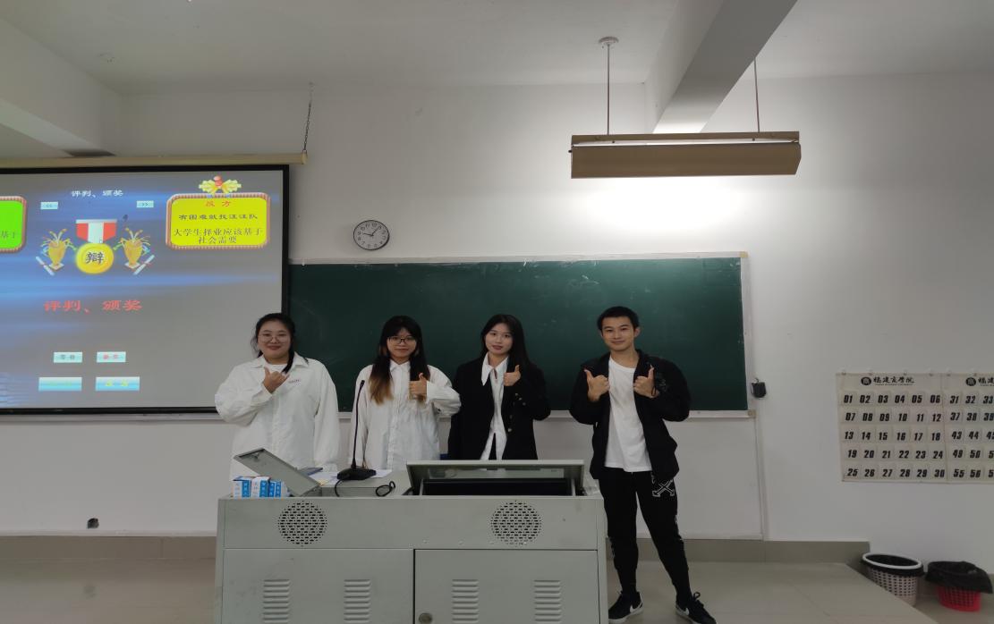 古有卧龙诸葛舌战群儒,今有群英荟萃慷慨陈词。本次辩论赛各专业学生踊跃报名,热情参与。比赛共分为初赛、复赛、决赛三部分。在初赛阶段,赛场气氛紧张热烈,双方辩手你来我往、侃侃而谈,台下观众激情澎掌声连连响起。复赛阶段,各晋级队伍旁征博引,相互之间进行了激烈的交锋,观赛学生热情参与,互动环节更是将现场的氛围活跃起来。 历经疫情停课的波折,终于我们于11月16日晚七点在远志楼t3教室迎来了扣人心弦的决赛,参赛队伍就“乡村振兴更注重引进外来优秀人才/培育本地乡土人才”和“大学生择业应该基于兴趣爱好/社会需要”这两个辩题中展开激烈的辩论。自由辩论环节,现场的比赛氛围更是达到了高潮,双方选手据理力争,引经据典,现场气氛急剧升温,掌声不断。