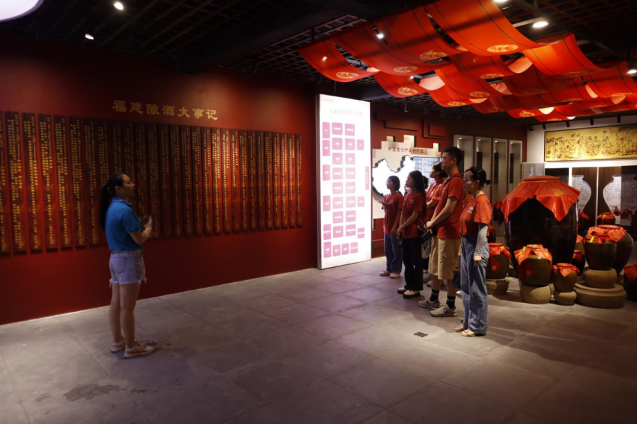 乡村振兴重要一步,就是振兴当地特色企业,而说起建瓯就必定会提到建瓯的酒业。建瓯自古素有“酒城粮仓”的美称。实践队参观了建瓯双龙戏珠酒厂,了解建瓯酱酒的文化。建瓯酿酒历史已长达3000多年,起于商周、兴于秦汉、盛于宋唐、昌于明清,千年沉淀,声名远扬。并且建瓯地处北纬27度21分,与茅台、郎酒等地同处酱酒黄金酿酒带。而由于建瓯位于沿海省份,与川贵内陆腹地酿酒条件又略有不同,形成了得天独厚的极其适宜酱酒功能菌培育繁殖的生态环境,孕育了独特芳香的“山海生态酱香”风味。