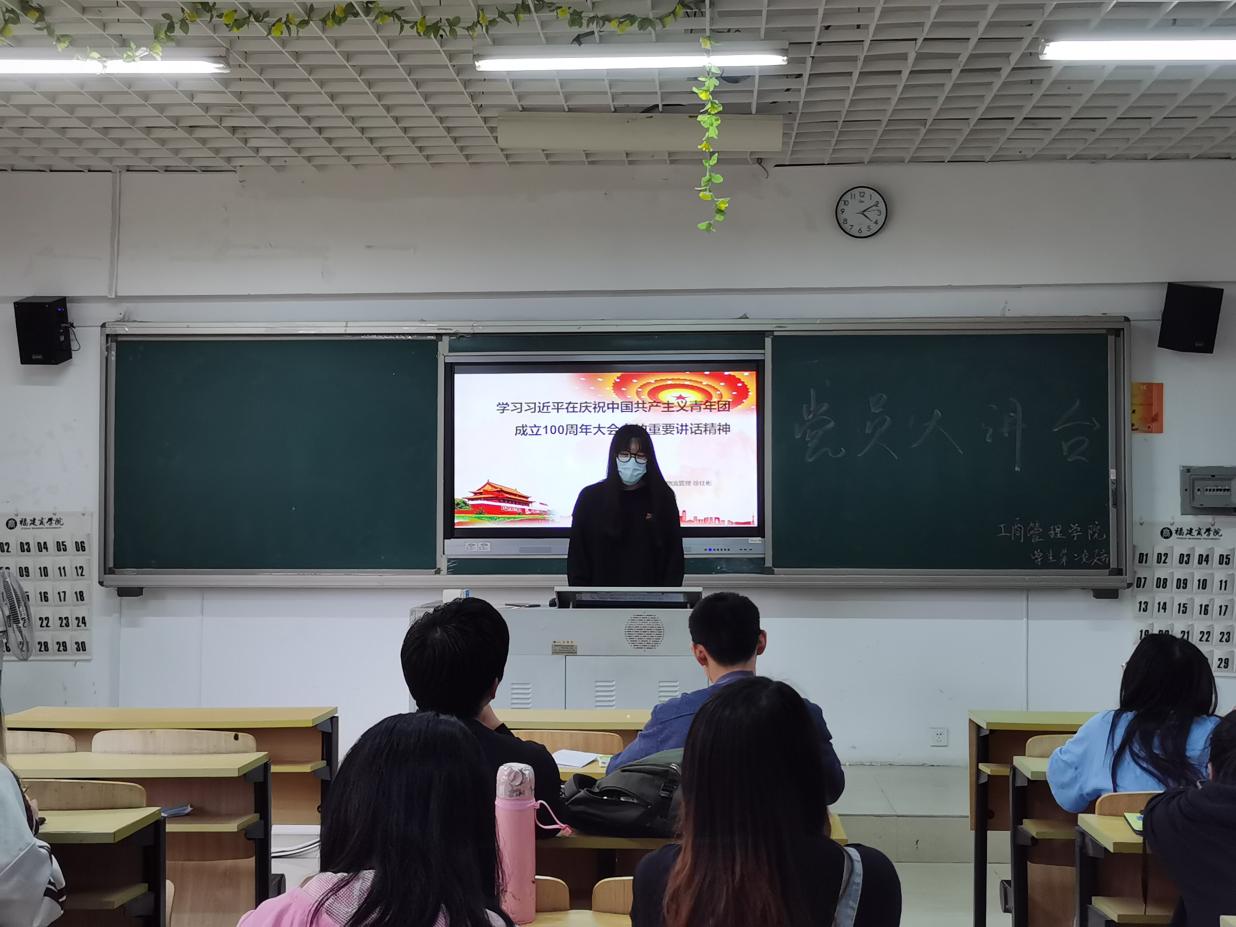 5月13日下午,beat365英国官方网站学生第二党支部在诚信楼201教室组织开展学生党员大讲台,学生党员徐佳彬和蔡嘉程同学跟入党积极分子分享了自己学习“习近平总书记在庆祝中国共产主义青年团成立100周年大会上重要讲话”的心得体会,并为同学们介绍了习近平总书记在庆祝大会上的重要讲话相关知识。