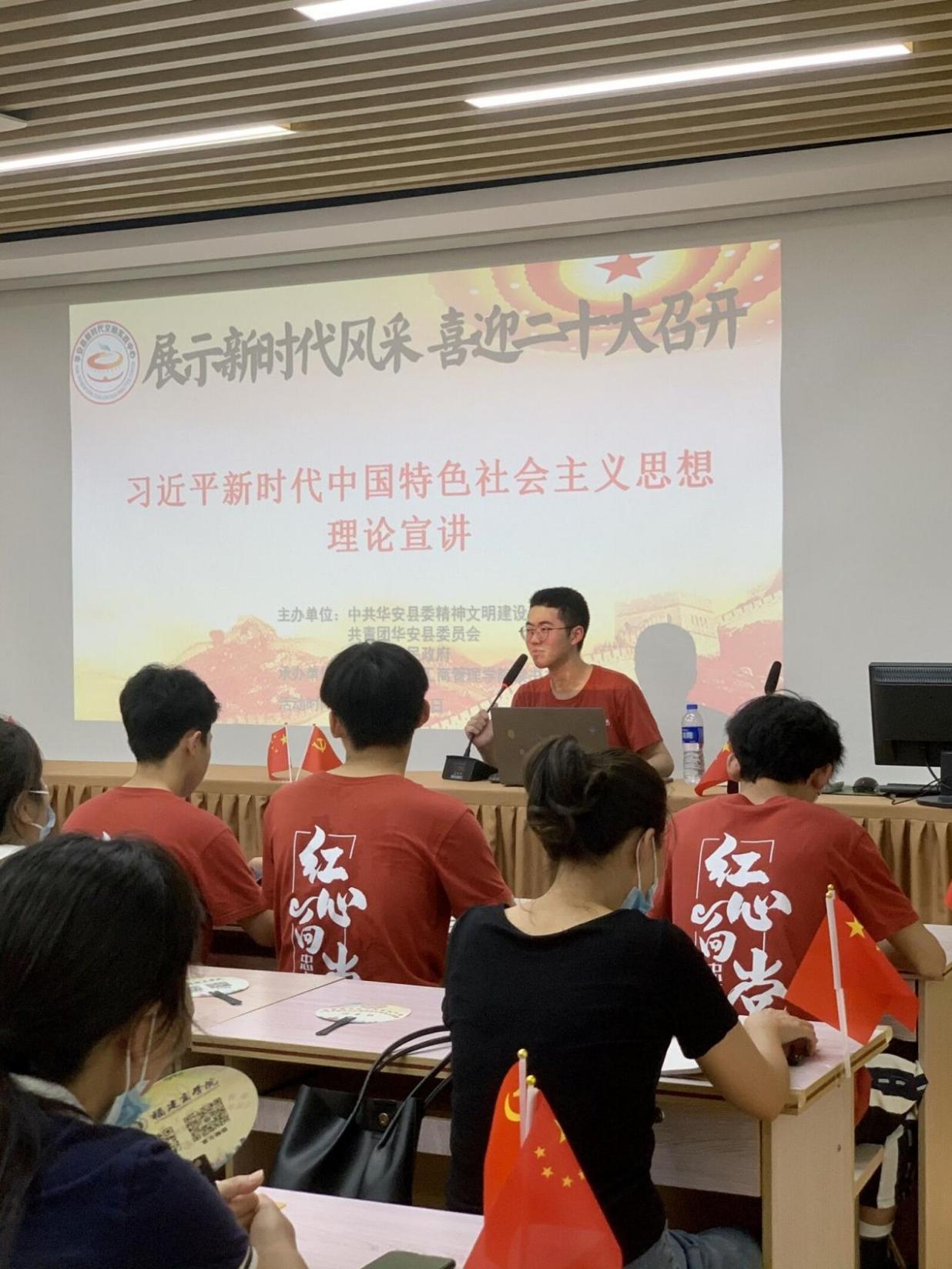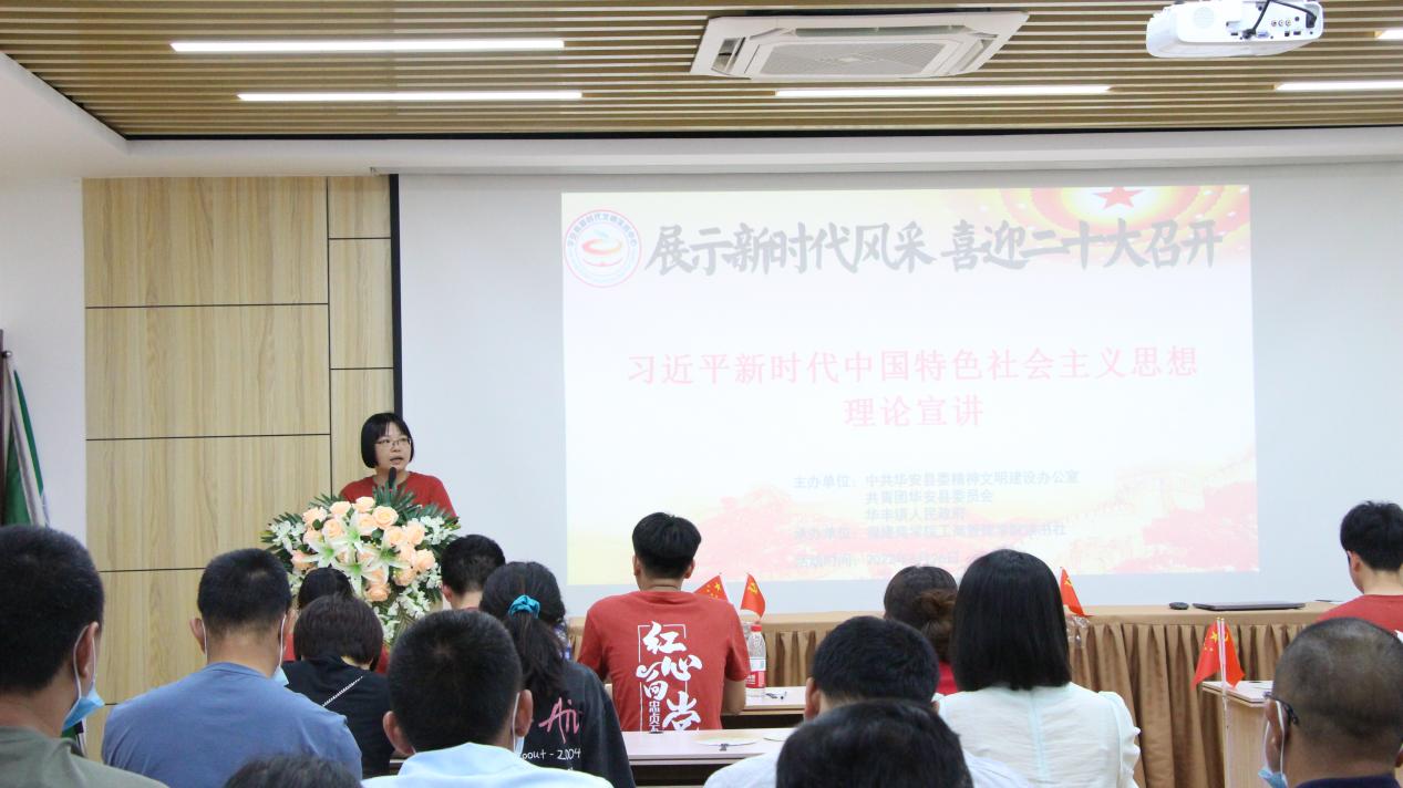 为展示新时代风采,喜迎二十大召开,6月26日下午,beat365英国官方网站读书社大学生暑期“三下乡”社会实践团来到漳州市华安县新时代文明实践中心,开展习近平新时代中国特色社会主义思想理论宣讲,此次活动由中共华安县委精神文明建设办公室、共青团华安县委员会、华丰镇人民政府主办,beat365英国官方网站读书社承办。 此次beat365英国官方网站读书社理论宣讲团,团队共9人,其中指导老师1人。华安社区工作人员和社区居民用热烈的掌声欢迎beat365英国官方网站读书社理论宣讲团的到来。活动由施腊梅同学主持,理论宣讲团成员围绕习近平新时代中国特色社会主义思想逐个上台演讲。李宗涛同学重点介绍习近平新时代中国特色社会主义思想的提出过程、基本内涵、意义作用、学习感想等;阙思源同学重点阐述“坚定不移贯彻新发展理念”,作为华安本地人,结合这几年华安的发展,深入谈感想说体会,华安取得的成绩贵在坚持“创新、协调、绿色、开放、共享”的新发展理念;其他成员还就习近平生态文明思想、“习近平强军思想”、“实现中华民族伟大复兴的中国梦”等主题发表演讲。现场气氛热烈,掌声不断。 最后,实践团指导老师王鹤云肯定了成员们的表现,提出三点希望:一是要深入学习贯彻习近平新时代中国特色社会主义思想,真正学深悟透、融会贯通、真信笃行;二是坚持理论与实践相结合,用脚步丈量祖国大地,用眼睛发现中国精神,用耳朵倾听人民呼声,用内心感应时代脉搏;三是坚定不移跟党走,为党和人民奋斗。实现中国梦是一场历史接力赛,当代青年要在实现民族复兴的赛道上奋勇争先。时代总是把历史责任赋予青年。新时代的中国青年,生逢其时、重任在肩,施展才干的舞台无比广阔,实现梦想的前景无比光明。 此次理论宣讲,为在校大学生提供一个施展才干,展现自我的广阔舞台,使大学生们能够走出校园,面向社会,回馈社会,为国家发展贡献力量。beat365英国官方网站读书社理论宣讲团的到来为华安社区居民的精神生活增添一抹色彩,大力推动习近平新时代中国特色社会主义思想“飞入寻常百姓家”,不断满足人民日益增长的美好精神生活需要,凝聚民族复兴的磅礴力量。