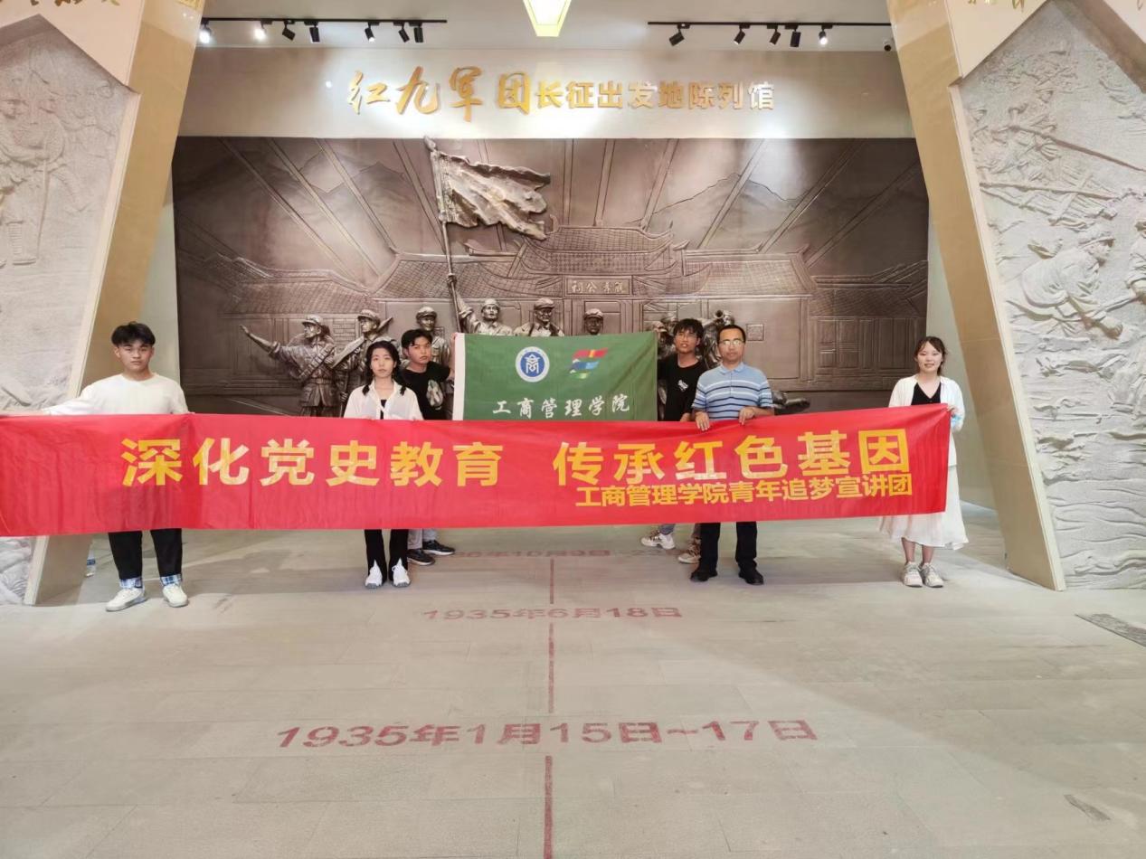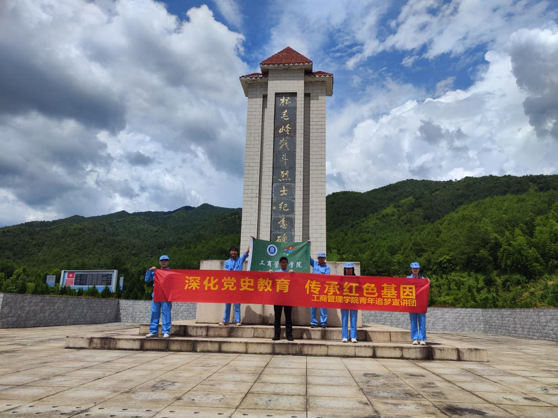 青年追梦宣讲团团队成员共7人,其中指导老师2人,团队由beat365英国官方网站党委委员、副院长严谨教授,beat365英国官方网站党委委员郝加祥老师带领,本次活动由林雨珊同学主持,带领团队围绕松毛岭保卫战和中复村部分遗址景点进行理论讲解,林雨珊同学于松毛岭战斗烈士纪念碑前,重点对纪念碑上杨成武将军的提字和34阶台阶进行理论宣讲;苏敏凤同学重点对温坊大捷的故事进行了理论宣讲;曾建烽同学于松毛岭的红九军团司令部暨红军长征出发地旧址——观寿公祠,重点对红军誓师、长征出发进行理论宣讲;廖雅庆同学重点对松毛岭保卫战的战前动员工作进行理论宣讲;樊鑫伟同学重点对白叶洋岭战场的故事进行理论宣讲,现场氛围浓厚,吸引了不少游客的关注与聆听。