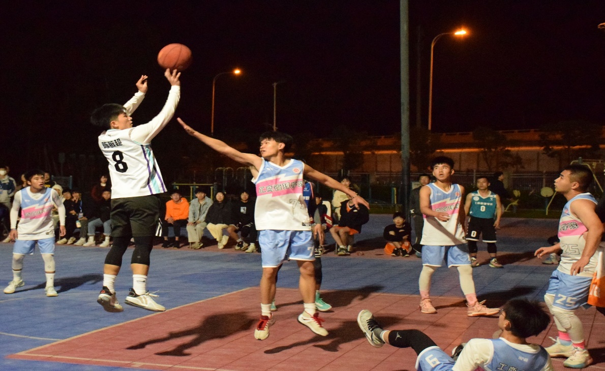 晚上六点,伴随着哨声的响起,第一场比赛对决正式拉开序幕。双方的比拼十分激烈,团队之间的默契传球、完美配合以及队员们熟练的运球、传球,无不将现场的气氛推向高潮。对阵双方积极地拼抢、精准地投篮,引来围观同学们一阵阵地呐喊助威。最终,20级物流管理以58:43的比分夺得胜利,成为本场比赛的季军。