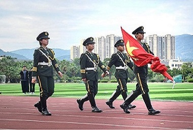 升旗仪式开始,国旗护卫队踏着铿锵有力的步伐将五星红旗互送至升旗台,伴随着《义勇军进行曲》响起,鲜艳的五星红旗徐徐升起,在场师生立正站立,并寄予最崇高的敬意,国旗的鲜红是革命先辈的鲜血染成,我们可以从其中回忆起那段艰苦岁月。