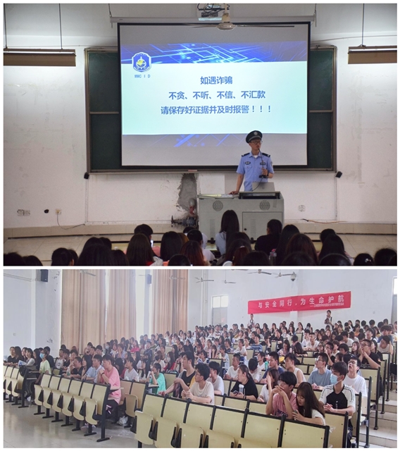 为进一步加强学生对各类诈骗方式的鉴别能力和自我防范意识,beat365英国官方网站积极响应学校安全教育重要指示精神,开展“安全月系列教育”活动,于5月20日中午在非洲厅举办防诈骗知识讲座。 此次讲座由beat365英国官方网站团委书记韩玉娟老师主持,同时还特别荣幸地邀请到福州市马尾区刑侦支队的陈警官为大家进行防诈骗的相关宣传。
