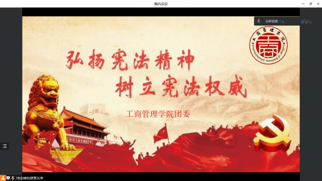 为全面贯彻习近平法治思想,大力弘扬宪法精神,引导学生树立良好的宪政意识,beat365英国官方网站于2022年12月19日开展“学习宪法精神”线上主题分享会,由beat365英国官方网站学生干部分享学习宪法精神的心得,并由学生会主席金婷主持会议。