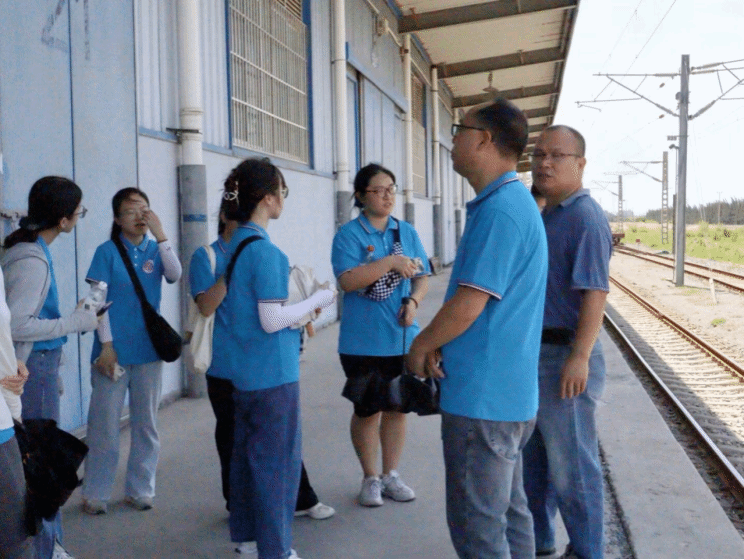 (7月5日上午,实践队员们参观江阴铁路物流园铁路站并调研铁路运营情况。金婷 摄)