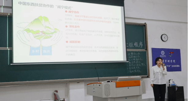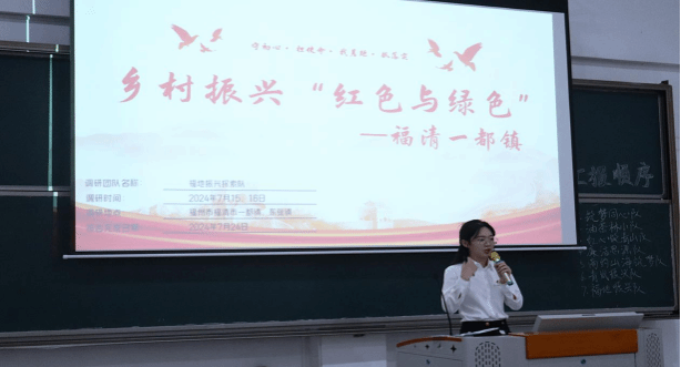 实践团队走近社会,探寻乡村,探寻时代足迹,弘扬红色精神。会上,实践团代表们依次上台进行分享,讲述实践活动中的所见所闻、所感所悟。从亲身体验非遗古韵文化的传统魅力,到探索东西扶贫协作的闽宁模式;从挖掘红色历史文化资源底蕴,到关注绿色生态环境保护,一个个实践故事的讲述让同学们感受到社会实践的意义和魅力。