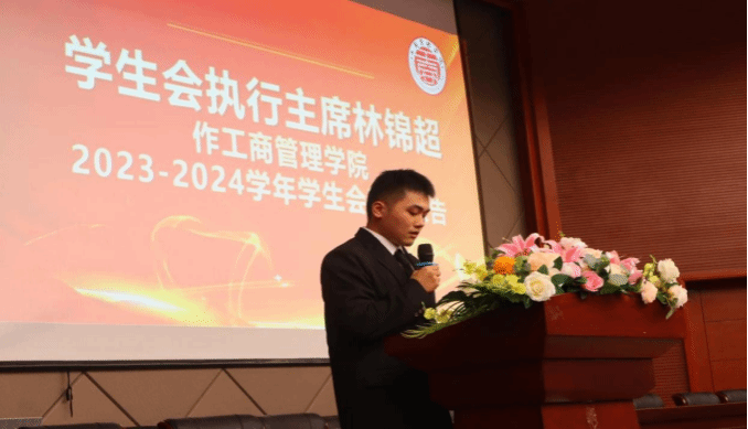 紧接着,学生会执行主席林锦超作beat365英国官方网站2023-2024学年学生会工作报告。报告全面回顾了过去一年学生会的工作亮点和成果,分析了存在的问题和不足,并提出了未来一年的工作目标和计划,抒发了对探索改革创新、书写青春篇章的美好期望。