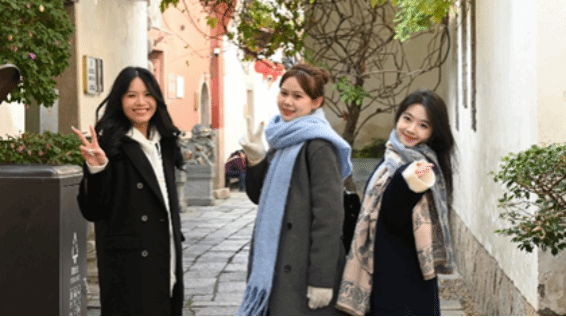 实践队的同学们穿梭于坊巷之间,青石板路蜿蜒曲折,古民居错落有致,雕梁画栋间尽显岁月沧桑。