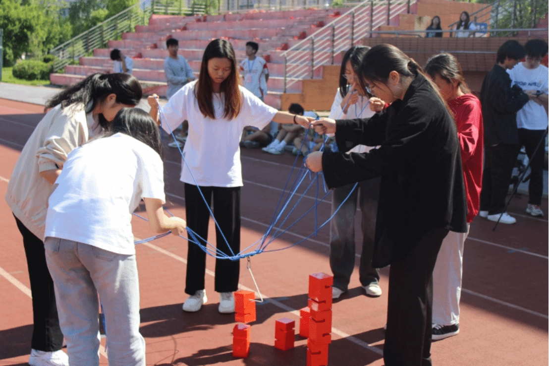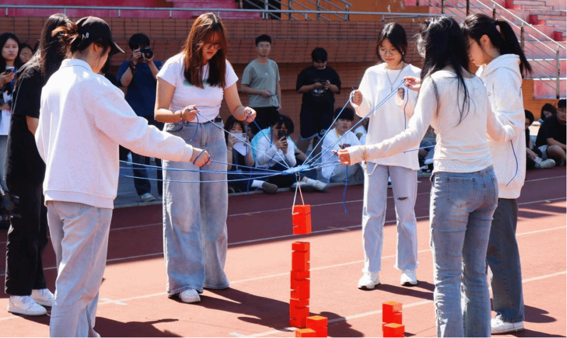 本次趣味运动会设有多个趣味项目,如“并肩齐行”、“默契搭搭搭”、“快乐转圈圈”和“桃花朵朵开”。项目的设置旨在让学生在团队协作与竞争挑战的过程中释放自身压力,改善情绪状态,提升自我效能感,促进学生身心健康发展。